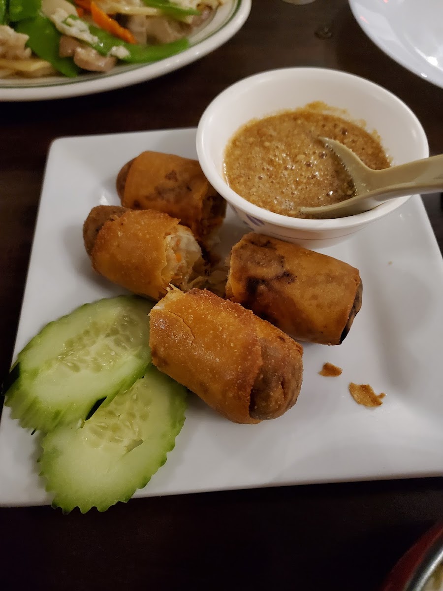The place often draws a mix of locals looking for authentic regional dishes that veer away from the more familiar Chinese-American options. Families and groups who appreciate bold, genuine Southeast Asian cuisine find it a comfortable, no-frills spot to dig into hearty plates. The menu itself is refreshingly eclectic — you’ll find everything from sizzling hot wings spiced in various regional styles to classic dishes like lemongrass wings and pad see ew, alongside less common items such as Lao style papaya salad, Cambodian lemongrass beef skewers, and crispy 3 layer pork belly. The lunch specials offer a straightforward, affordable way to sample some of the Chinese-American staples, each serving accompanied by a crispy egg roll.